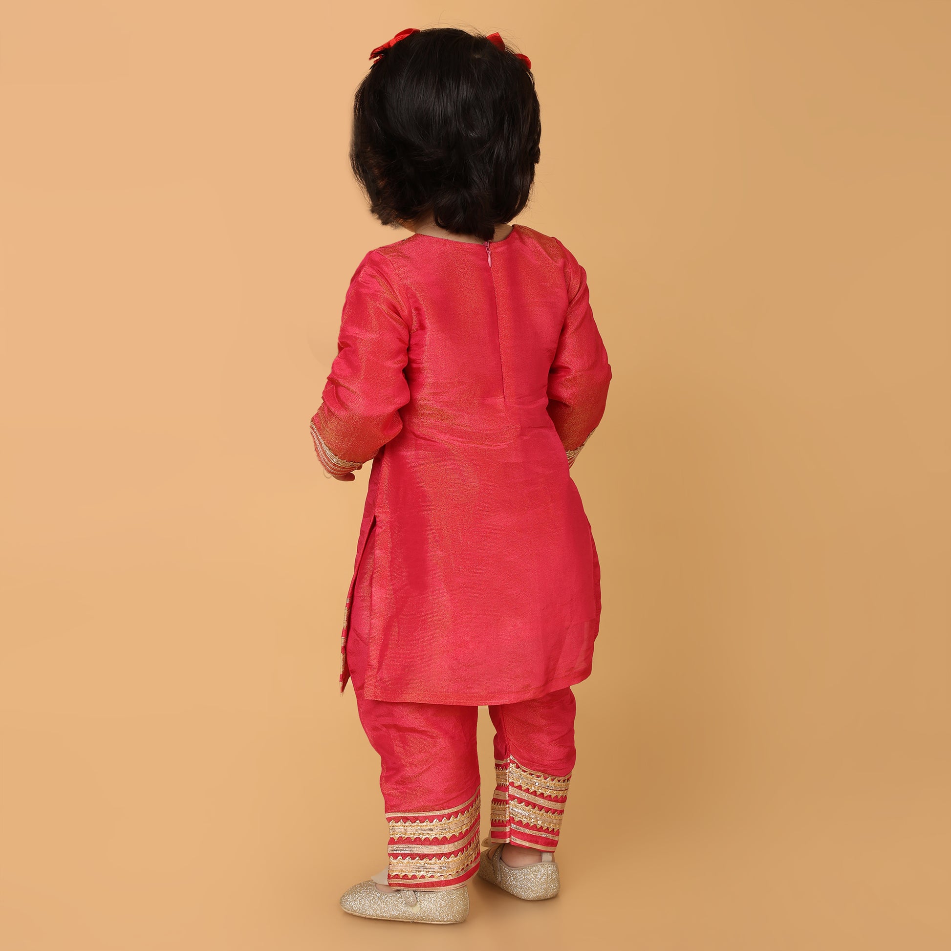 Bright, festive, and oh-so-comfy — our Gul Bahaar Kurta Set is designed to bring a little sparkle to your mini’s celebrations. Crafted from soft organza fabric in a vibrant fuchsia hue, it’s detailed with delicate lace trims that add a charming ethnic touch.